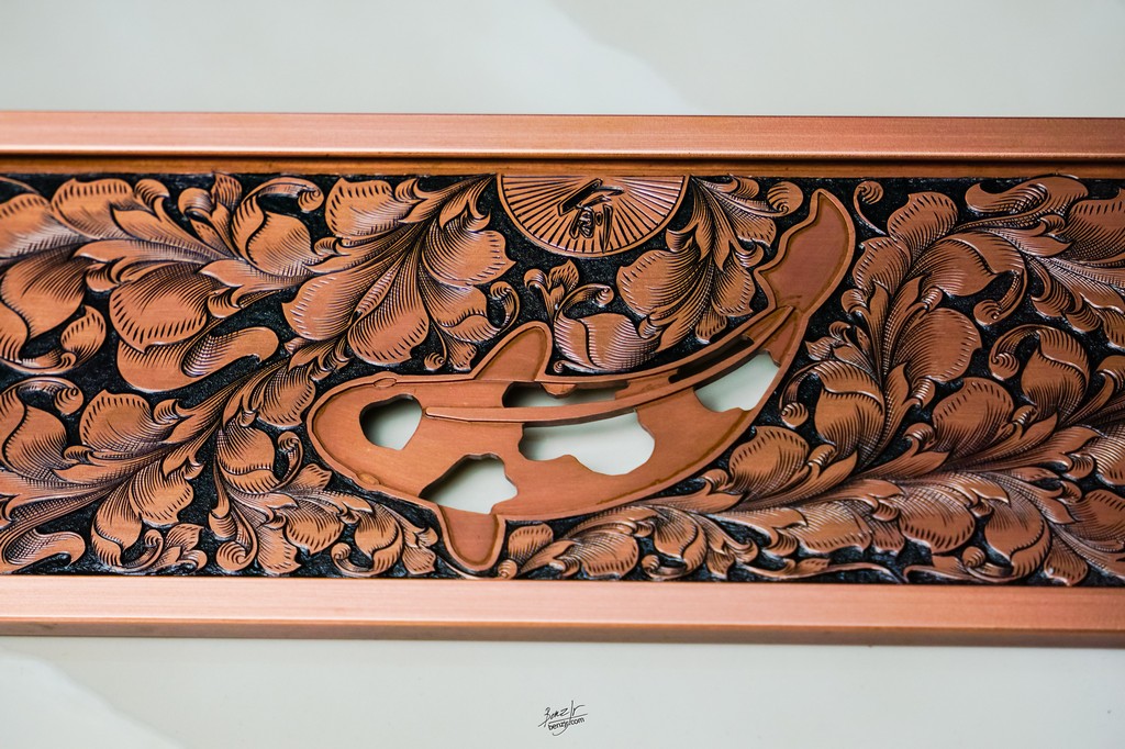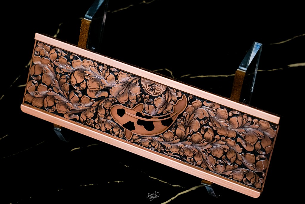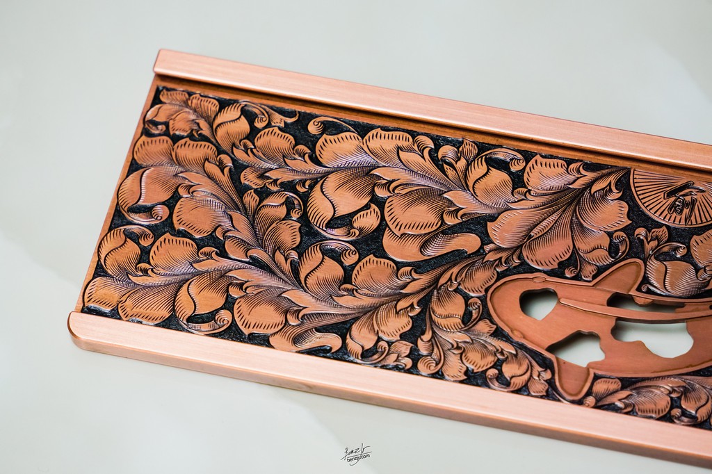 I spent over a month hand-engraving this Copper Kohaku weight, adorned with Benz Jr’s patterns and a Chinese character at its center.