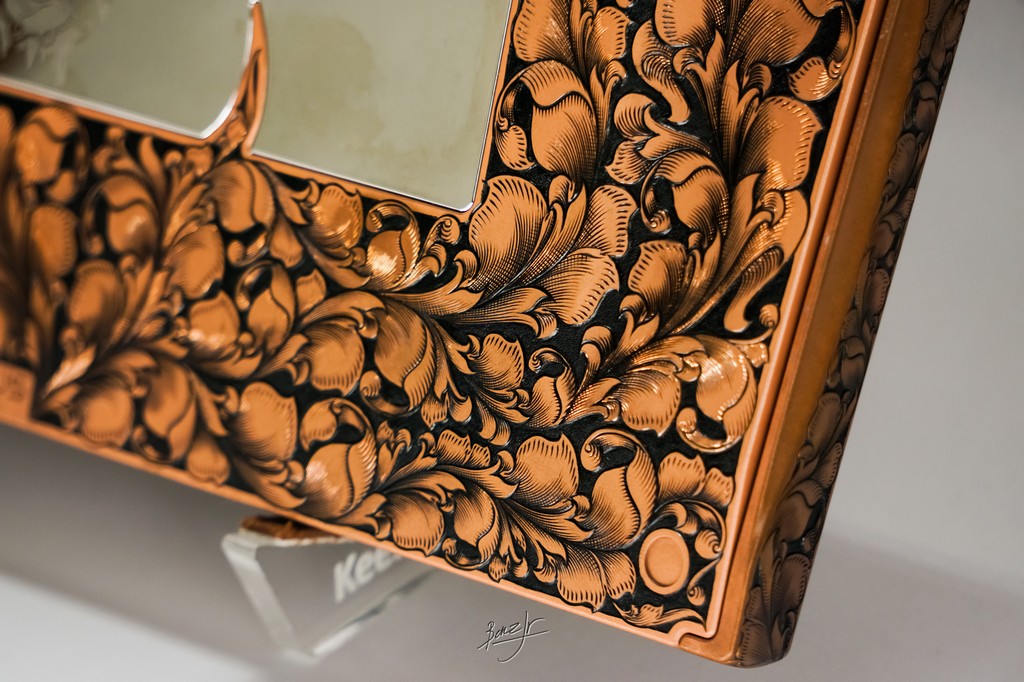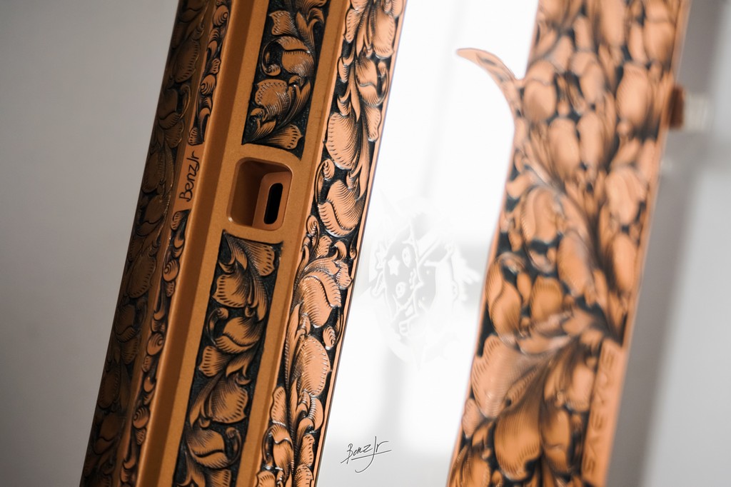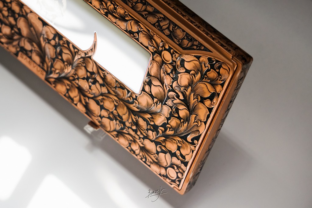The polished central section contrasts beautifully with the engraved surroundings, adding balance and focus to the composition. Executed in my benzjr style, this piece reflects both precision and individuality. It stands as a unique creation, combining craftsmanship and design into a bold, luxurious statement.